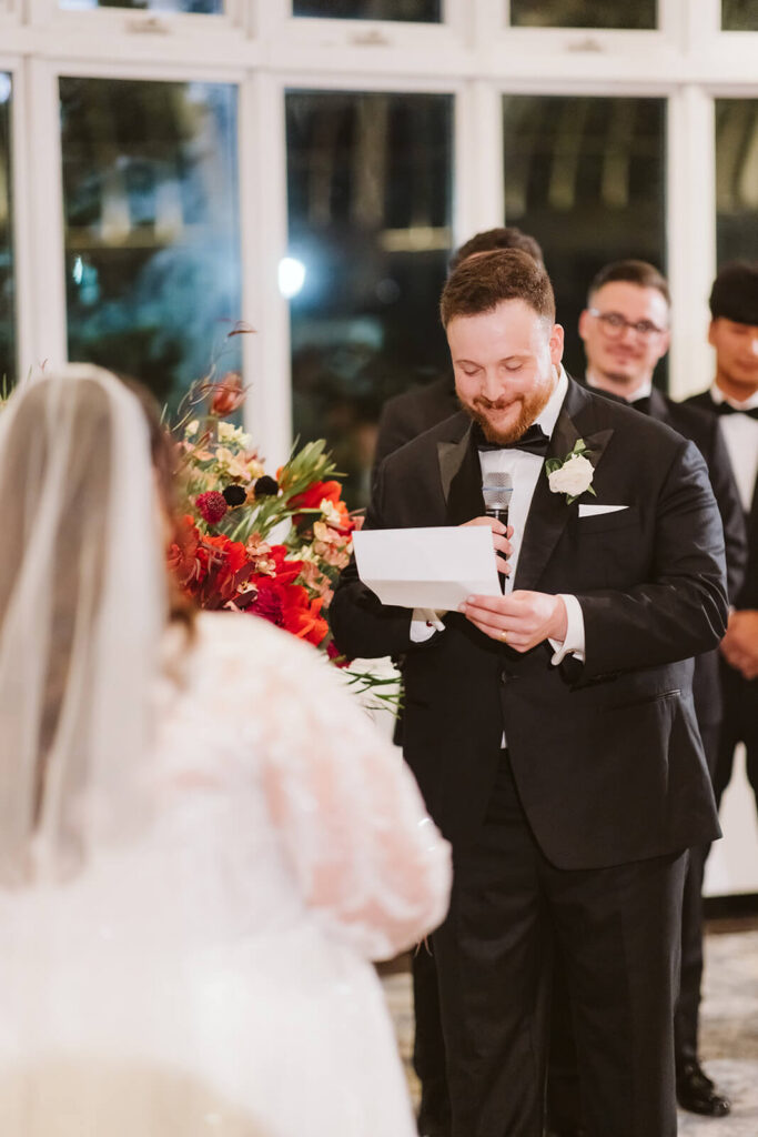 Because Joshua’s best friend was officiating, the ceremony felt warm, light-hearted, and perfectly attuned to Dahlia + Joshua. He seamlessly wove both laughter and heartfelt memories into the ceremony making it deeply personal and full of nothing but love for the happy couple. There were more than a few shining eyes as Dahlia + Joshua renewed their vows – including from Joshua himself! It was one of those sweet moments where the love felt almost tangible as the words of Dahlia’s vow rang out to fill the room.