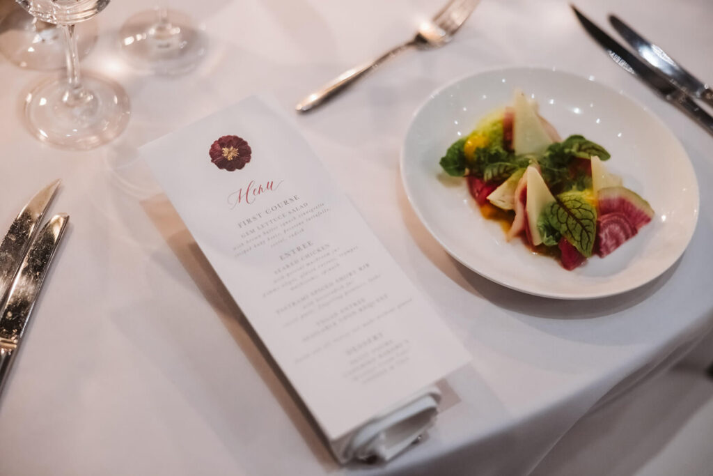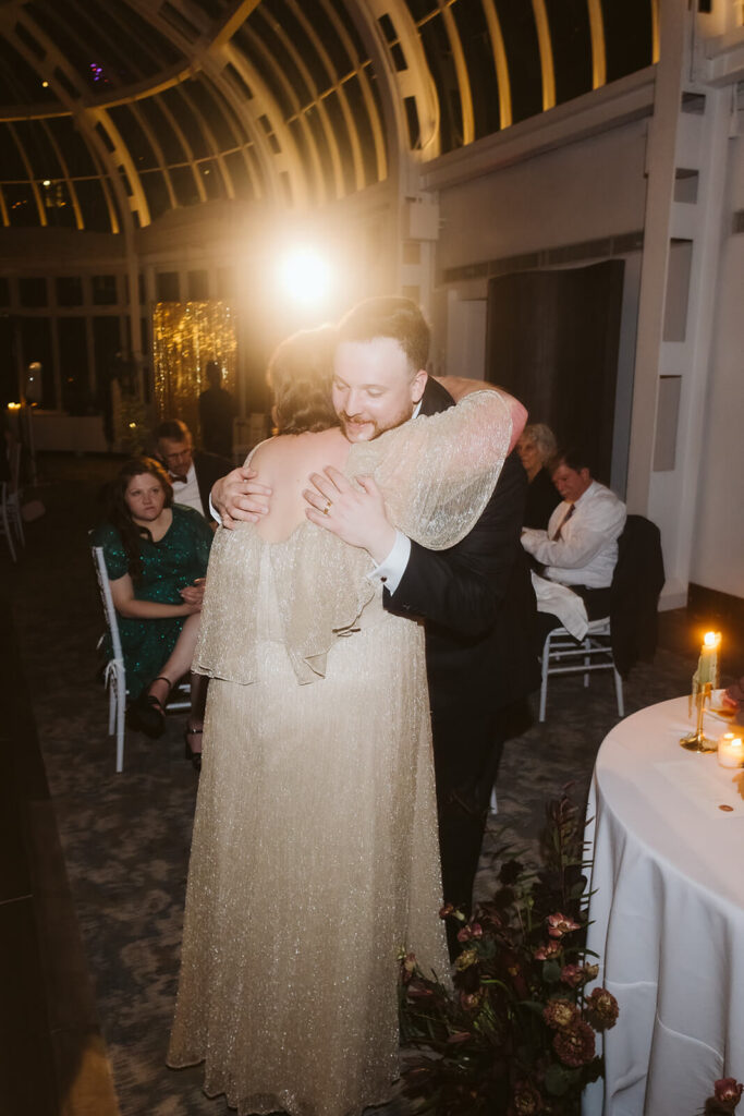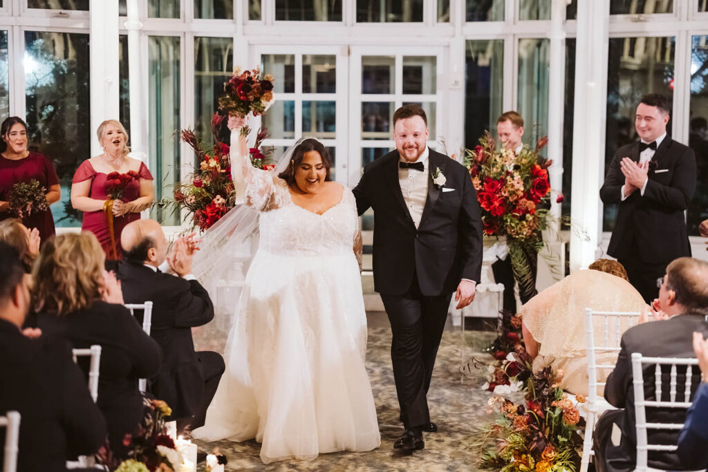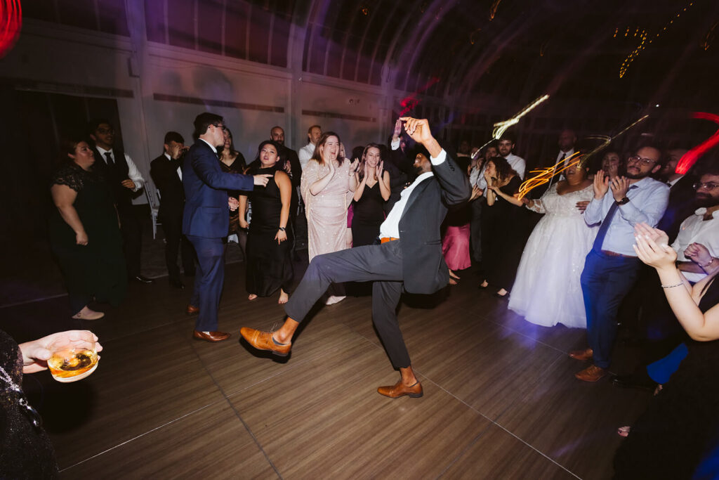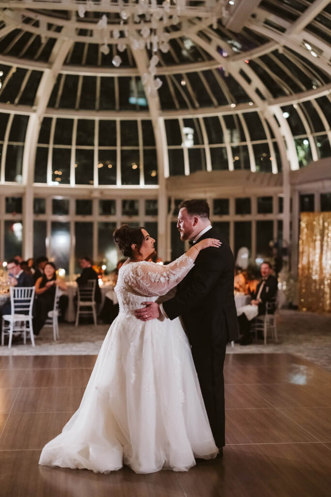 Once the ceremony ended, guests were ushered into the conservatory for cocktail hour while staff transformed the Palm House into a reception hall and dance floor. Appetizers and small plates made their way through the crowd, and Dahlia and Joshua were able to relax and join their guests without having to worry about slipping away for another photo session.