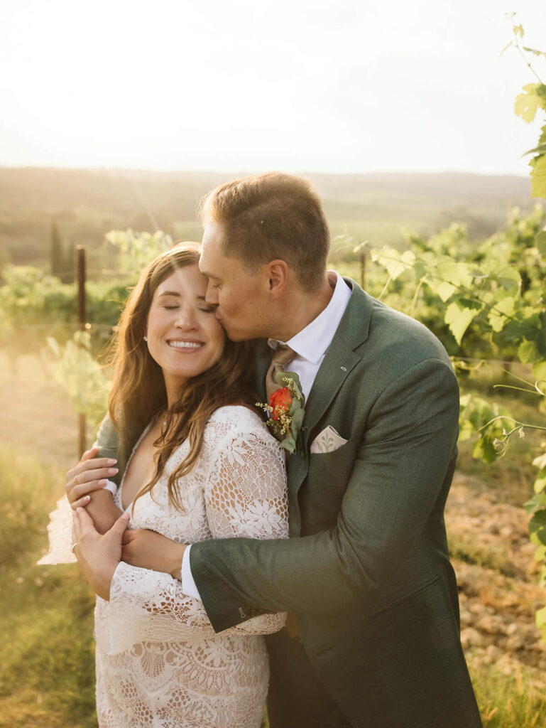 Thankfully, finding a venue – one of the biggest hurdles of wedding planning – was one that Gina + Alex could already check off their list. Decugnano dei Barbi wasn’t just a beautiful Italian vineyard the two had simply stumbled upon. A close friend of Gina’s frequently imported wine from Enzo, the vineyard owner. Gina had even visited the vineyard once for her friend’s birthday. The moment Gina + Alex had the chance to visit the vineyard together, they knew they had found their venue. With endless rows of grapevines all around them and a 360o view overlooking the hilltop town of Orvieto, it was the perfect setting for this travel-loving couple.