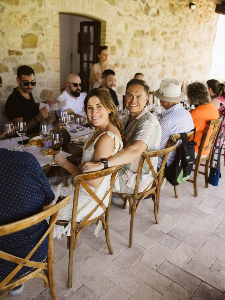 Gina + Alex’s wedding celebrations began a day early with a relaxed rehearsal and lunch. Their wedding party and their closest friends and family gathered the day before at the Villa Barbi where their ceremony would be held the next day. Surrounded by warm Italian sunshine, they walked through the ceremony, shared a delicious meal, and enjoyed pours of various wines created right on site. It was a simple, lovely way to take a breath, settle in, and begin the wedding festivities.