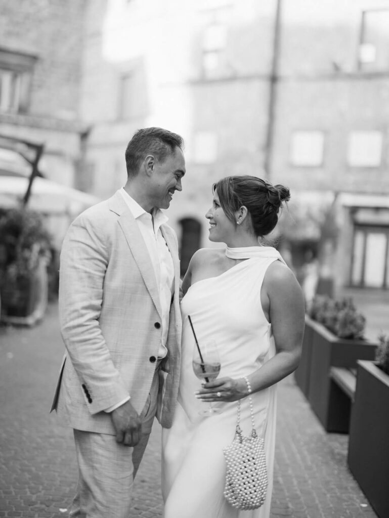 That evening, the celebrations continued as more of Gina + Alex’s guests began arriving in Orvieto. To greet them, Gina + Alex hosted a welcome party at the Emme Palace Hotel with a traditional Italian aperitivo. An aperitivo is a pre-dinner social gathering with drinks and appetizers. During the welcome party, spritzes flowed, glasses clinked, and small bites were passed around as conversation flourished throughout the hall. Gina + Alex greeted each guest as they arrived and thanked them for making the long trip to celebrate with them.