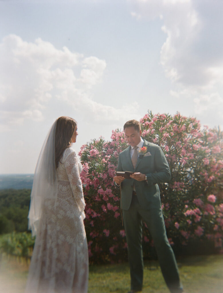 For an extra personal touch, Gina + Alex’s ceremony was officiated by Gina’s brother. He spoke about the two of them and their love story before passing the mic to Alex’s sister and a close friend of Gina’s, both of whom did special readings. Once the readings were done, Gina + Alex shared the vows that they had handwritten in matching leather journals. And with an exchange of rings and a joyful first kiss, the two were officially husband and wife.