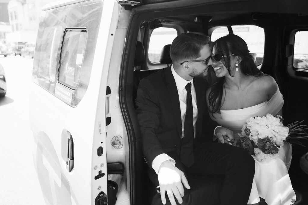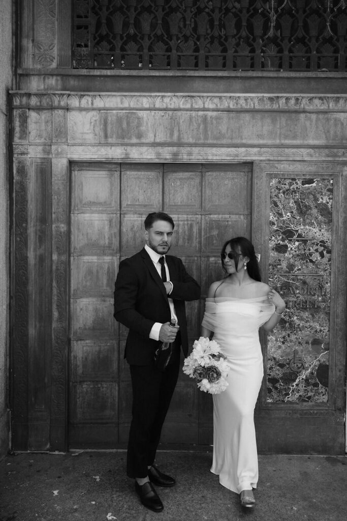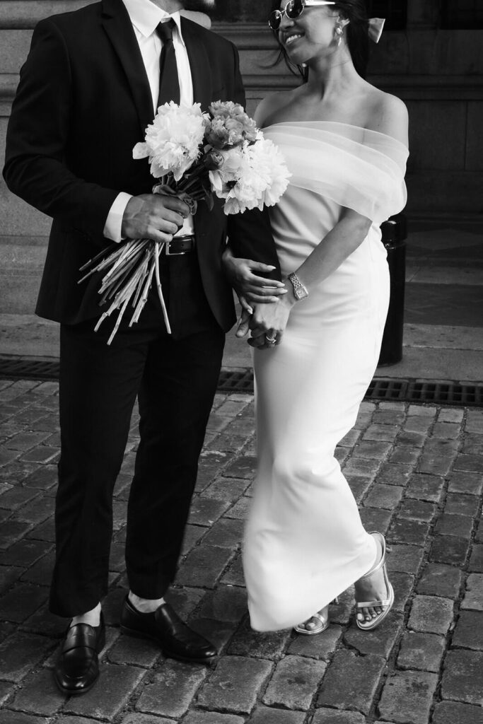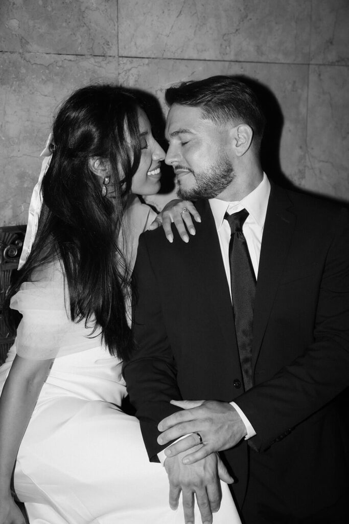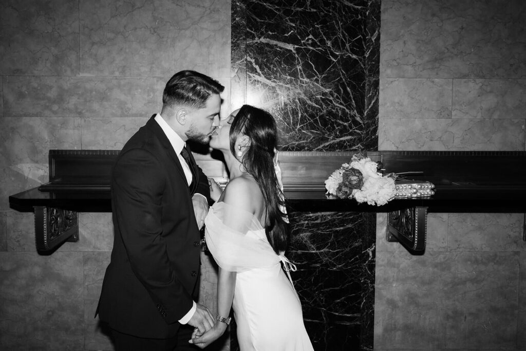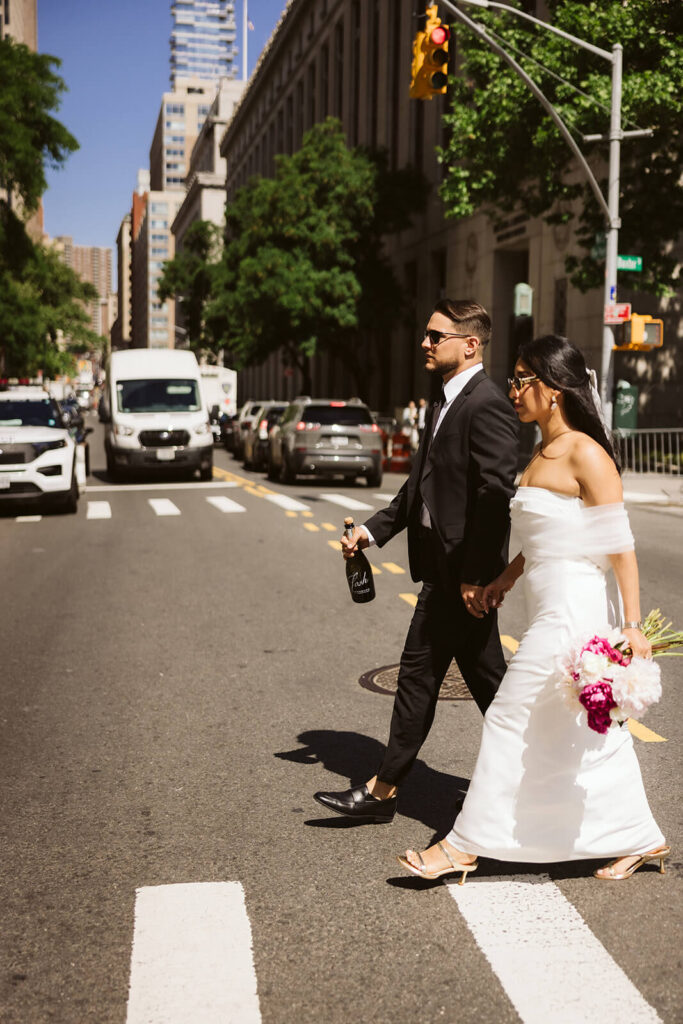 After leaving the courthouse, Carolina + Taylor spent the rest of their evening traversing Manhattan – the city their love story began in. Their first stop? The City Hall subway station. There we captured quintessentially New York City photos of the newlyweds with the whoosh of passing trains whizzing by in the background. Their dazzling smiles and laughter were just right for capturing both candid and posed shots that felt perfectly in sync with the vibrant rhythm of the city around them.