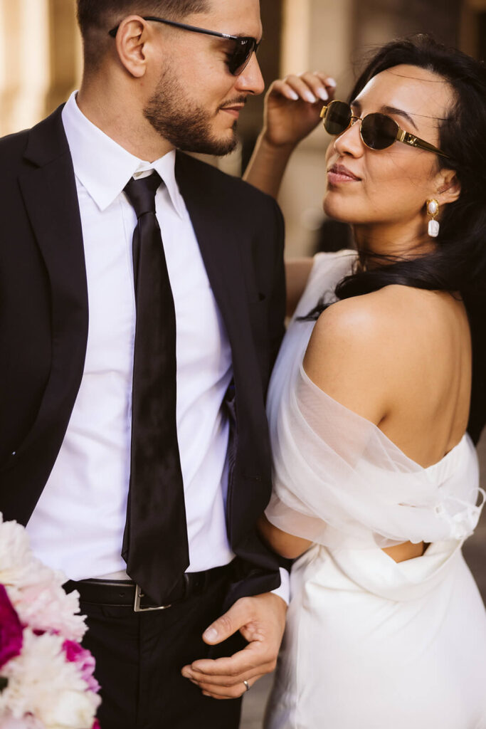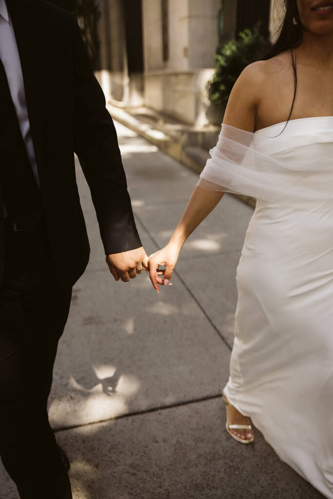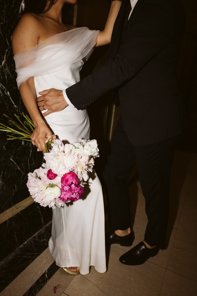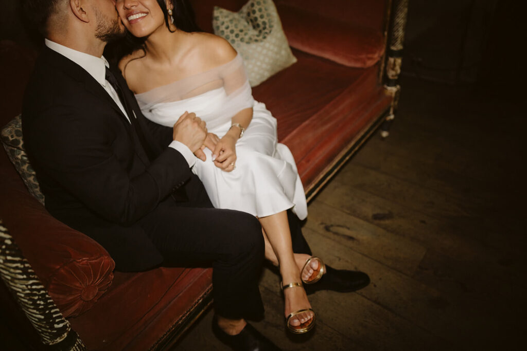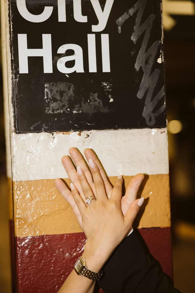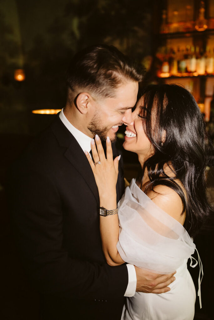 After leaving the courthouse, Carolina + Taylor spent the rest of their evening traversing Manhattan – the city their love story began in. Their first stop? The City Hall subway station. There we captured quintessentially New York City photos of the newlyweds with the whoosh of passing trains whizzing by in the background. Their dazzling smiles and laughter were just right for capturing both candid and posed shots that felt perfectly in sync with the vibrant rhythm of the city around them.