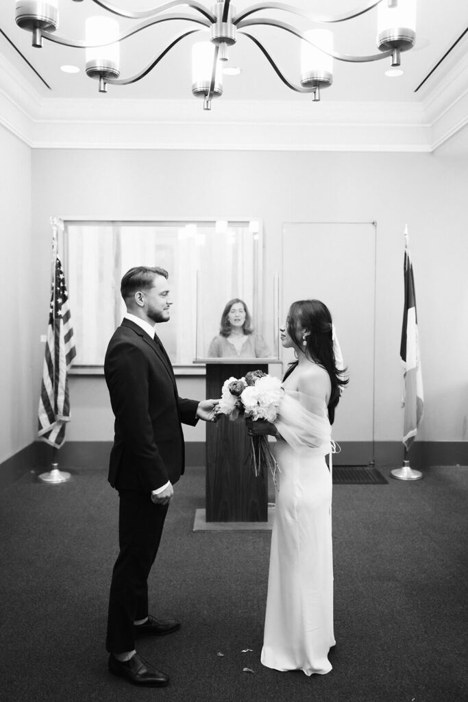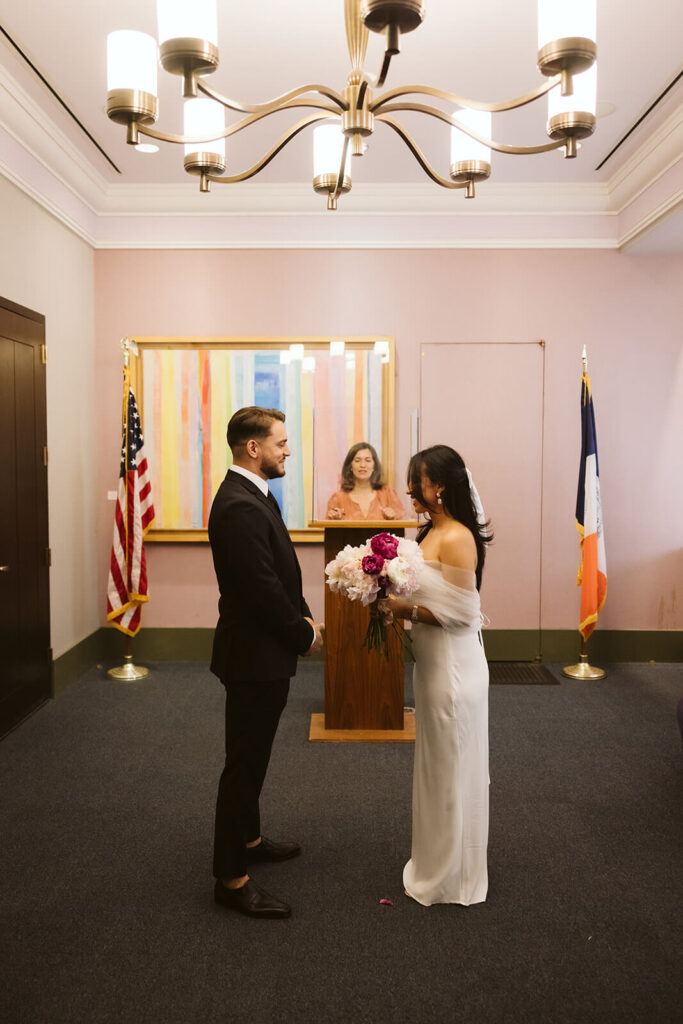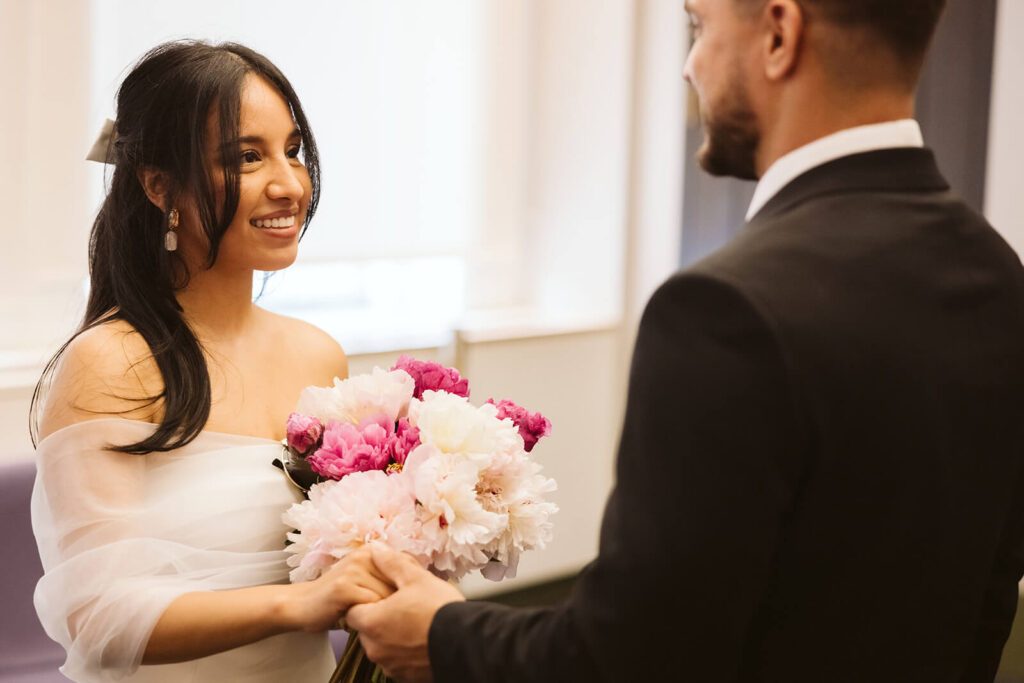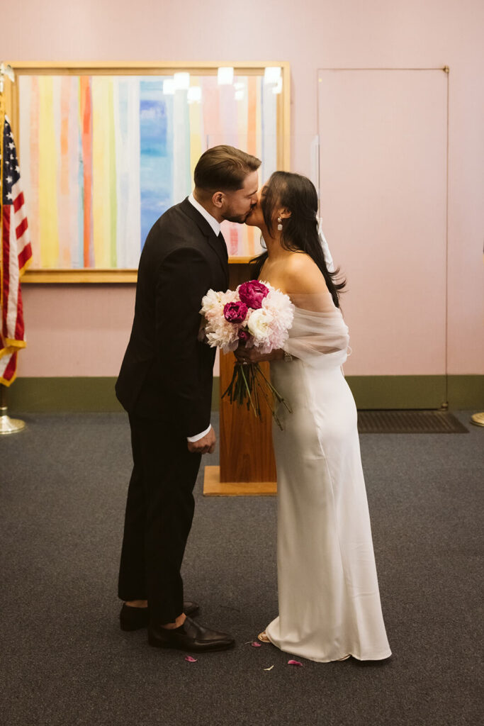 On the day of your ceremony appointment, you and your partner will arrive at your scheduled time at the City Clerk’s office with your IDs, excitement, and maybe just a few butterflies! Keep in mind all marriage ceremonies are booked during the office’s regular business hours, meaning they will likely be closed for federal holidays. The ceremony fee is just $25, and while the moment itself is brief (probably less than 10 minutes), it’s filled with the same energy and love you’d find in a traditional full wedding ceremony. After the ceremony, you’ll receive your Certificate of Marriage immediately and that’s that! You’ll officially be married!