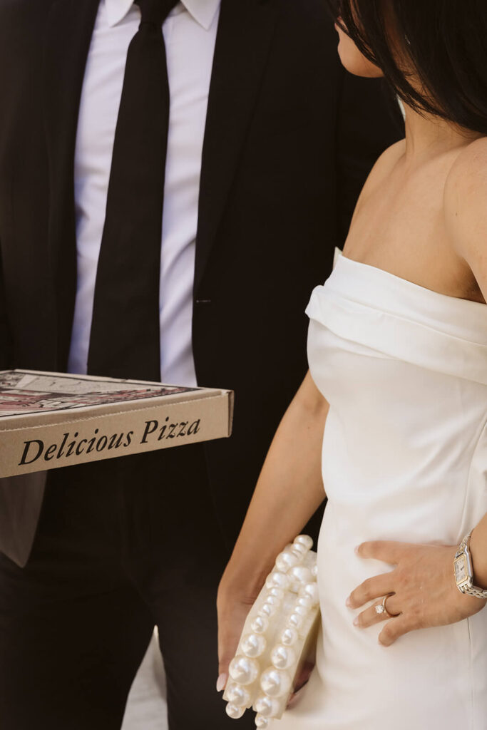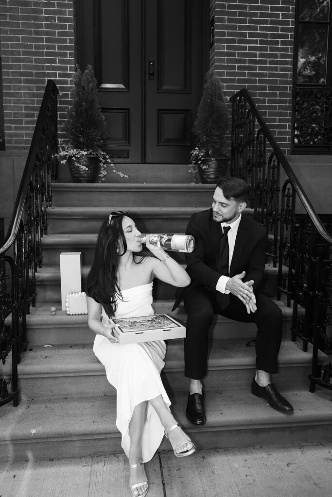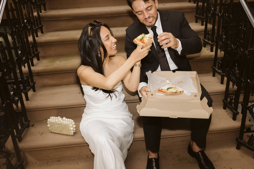 To end their day, Carolina + Taylor traded fine dining to end their elopement in true New York fashion – with a slice of pizza. They grabbed a box from a local pizzeria and found a quiet street among the brownstones in the West Village to enjoy their spontaneous dinner. It was a wonderful ending to a day filled with love, adventure, and the magic of Manhattan.